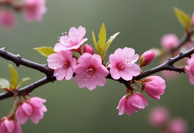 Cherry blossoms in bloom with vibrant pink petals