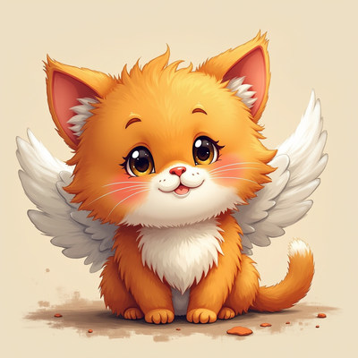 Cute orange kitten with wings sitting cheerfully