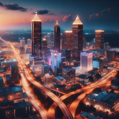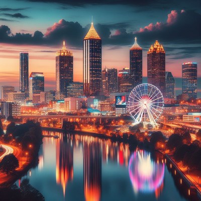 Olympic rings at sunset at Centennial Olympic Park in Atlanta, Georgia