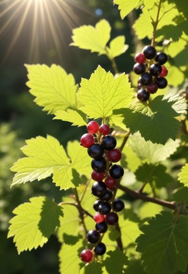 Berries grow on vibrant green plants in natural sunlight