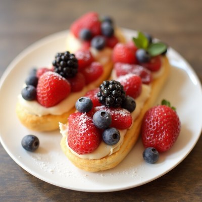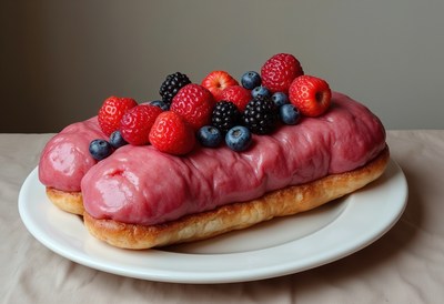 Delicious pastry topped with fresh berries on a plate