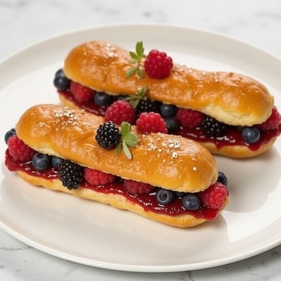 Delicious berry-filled pastries on a white plate