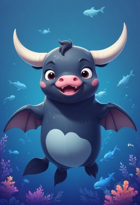 Smiling bull dragon in ocean