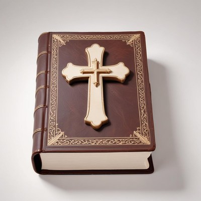 A leather-bound bible with a cross on the cover