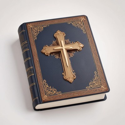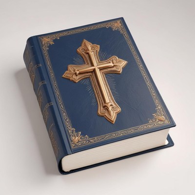 A blue book with a gold cross on the cover