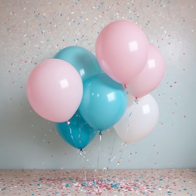 Pink and blue balloons with confetti