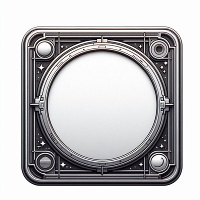 A circular window with a space-themed design