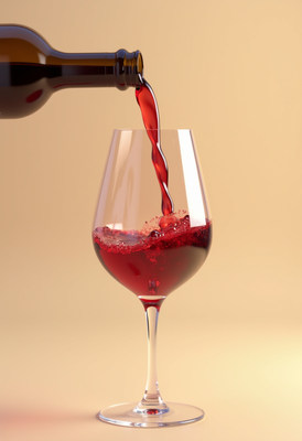 Pouring red wine into a glass with bubbles
