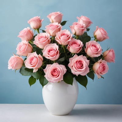 Pink roses in a vase on a table