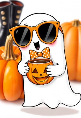 Ghost in shades sips pumpkin spice latte