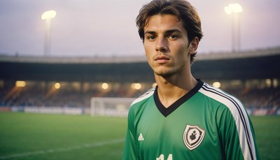 Young soccer player on field at dusk