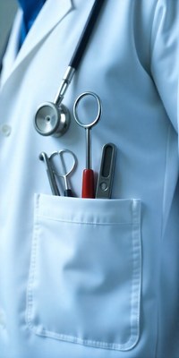 Medical tools in a doctor's coat pocket during work shift