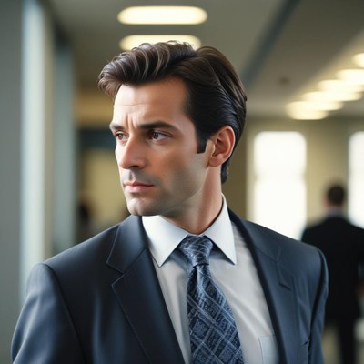 Businessman glances back while walking in the office