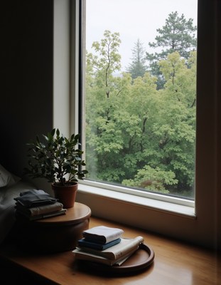 Cozy indoor setup with greenery view from the window