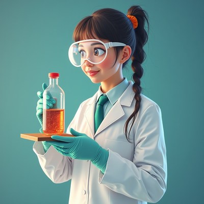 Young scientist experiments with colorful liquid in lab
