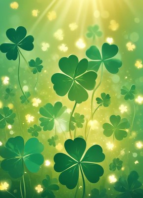 A cute young girl dressed up for Saint Patrick's Day holding a large clover
