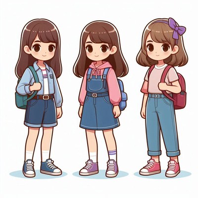 Three girls in casual outfits