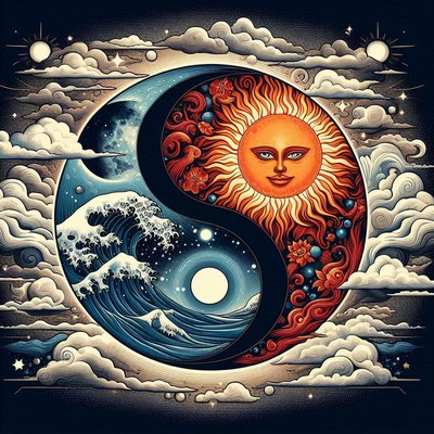 | Description: | Illustration of a black and white Yin-Yang symbol. |