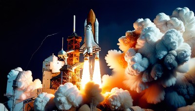 | Title: | The space shuttle lifting off |